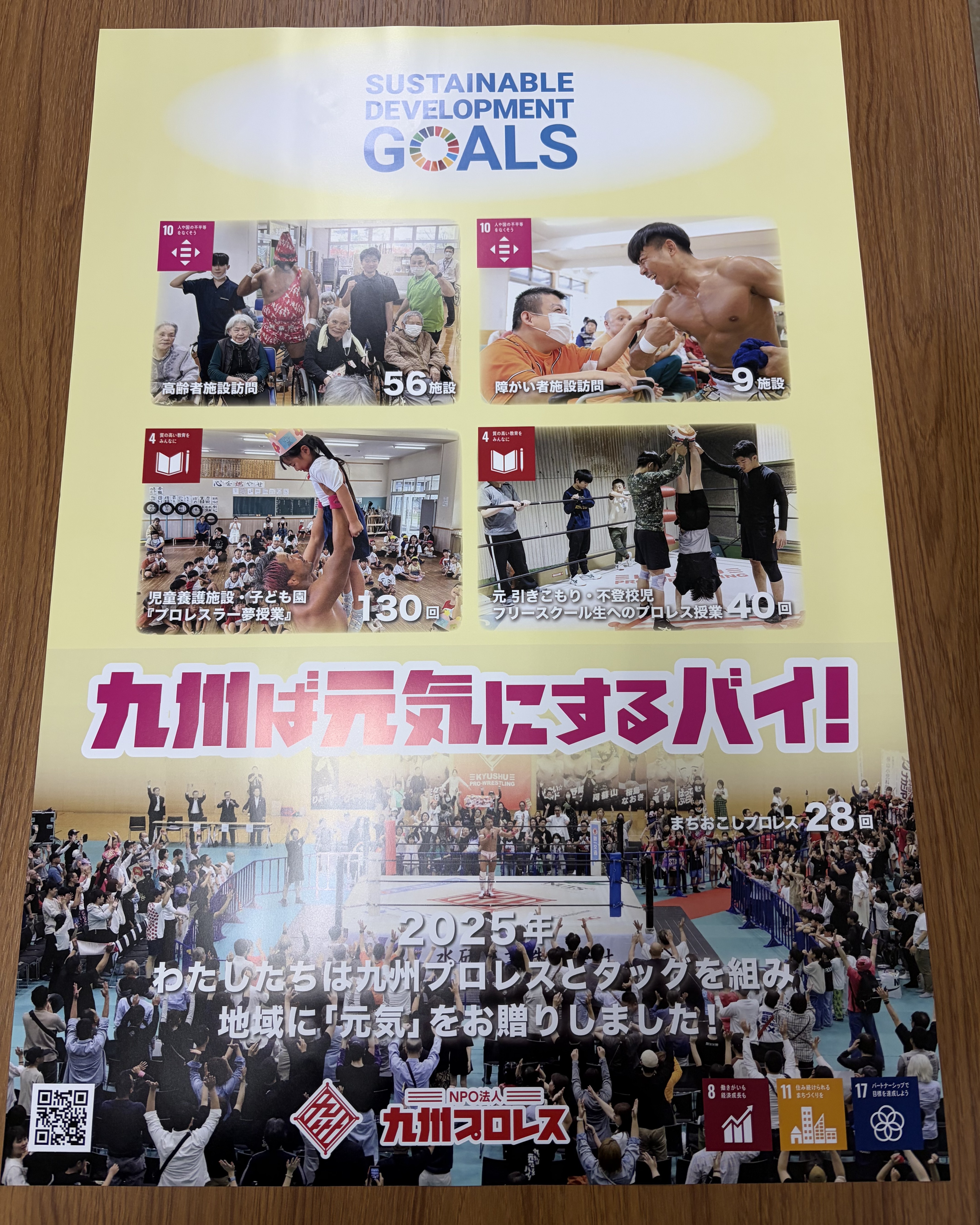 昨年、協賛を始めてから、九州プロレス様が施設訪問やチャリティ大会を通じて、多くの方々に笑顔と勇気を届ける姿を拝見してきました。 「九州ば元気にするバイ!」という力強いメッセージは、私たち地元の企業にとっても大きな励みとなっています。